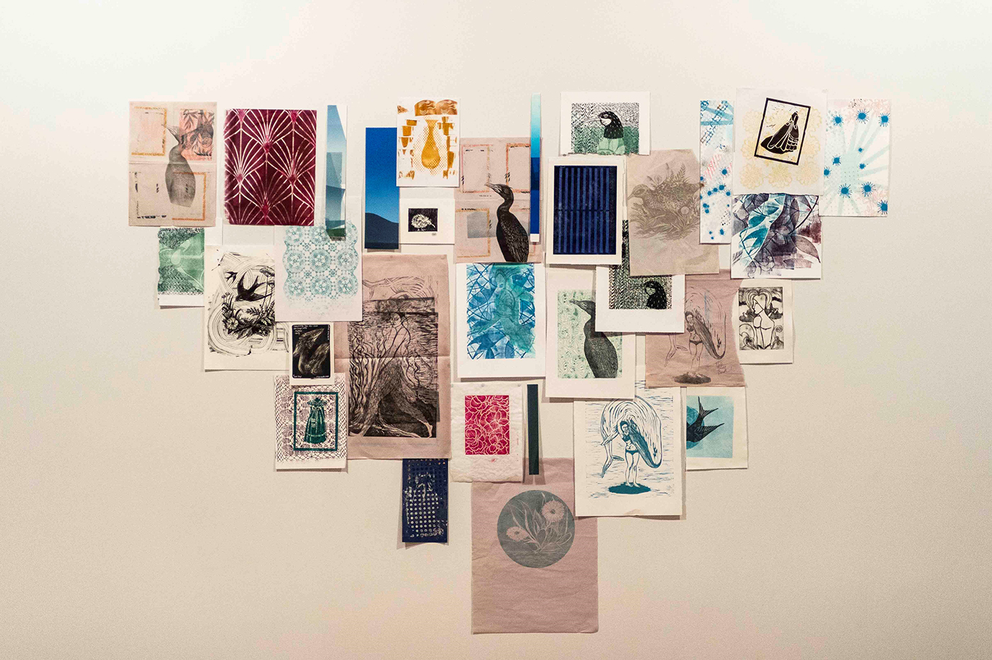 The variety of original prints on display include etching, drypoint, relief print, lino- and woodcut, screen print, collagraph, and monoprint. Selected artists also contributed a process-print to create a collective exhibition piece.